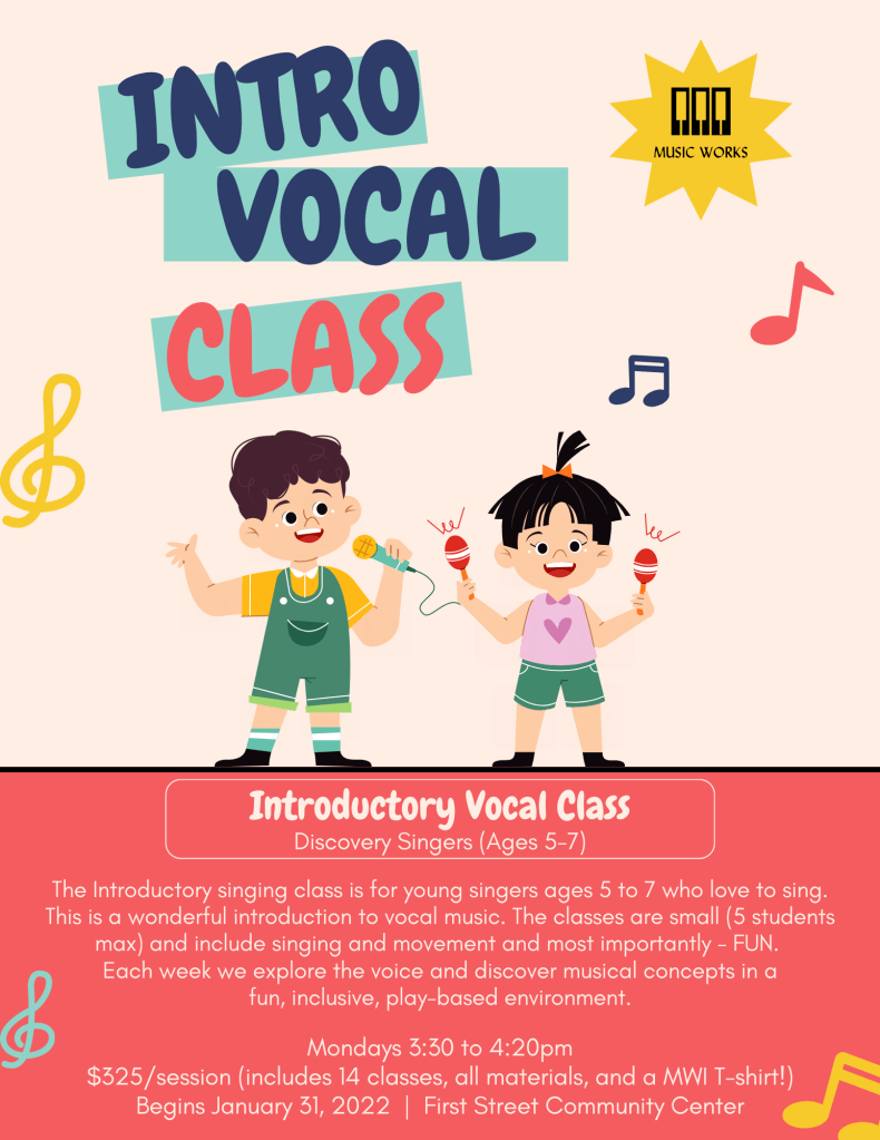 The Introductory Vocal Class is for young singers who love to sing. Classes are a wonderful introduction to vocal music. The classes are small (5 students max) and include singing and movement and most importantly – FUN. Each week we explore the voice and discover musical concepts in a fun, inclusive, play-based environment.