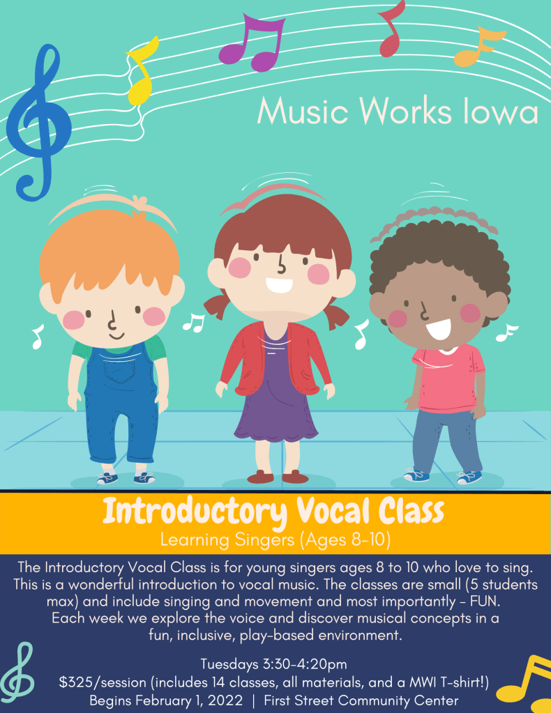 Includes 14 classes, all materials, and a Music Works Iowa T-Shirt!